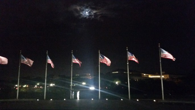 The night of the assassination attempt, my son and I went down to the Mall in DC. We walked from the Lincoln Memorial, past the WWII Memorial and then by the Washington Monument, all the way to the US Capitol. Then all the way back. Six miles. It’s a beautiful walk, seeing those national monuments and memorials and those American flags all lit up, flapping in the night wind.